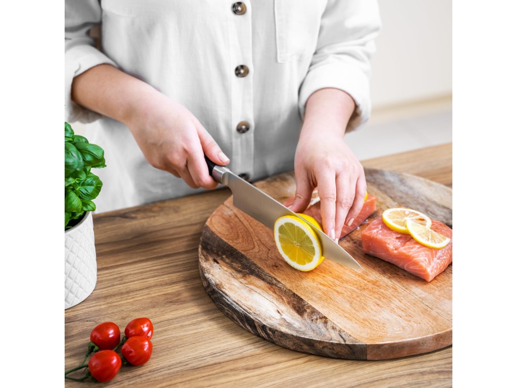 Rádi překvapujete rodinu a přátele chutnými pokrmy? Dobrý kuchyňský nůž šéfkuchaře je naprostou nezbytností ve vaší kuchyni. Charakteristické pro tento typ kuchyňských nožů je dlouhá, široká a dokonale profilovaná čepel, která je činí velmi univerzálními. Snadno nakrájíte maso, ryby, zeleninu nebo bylinky.