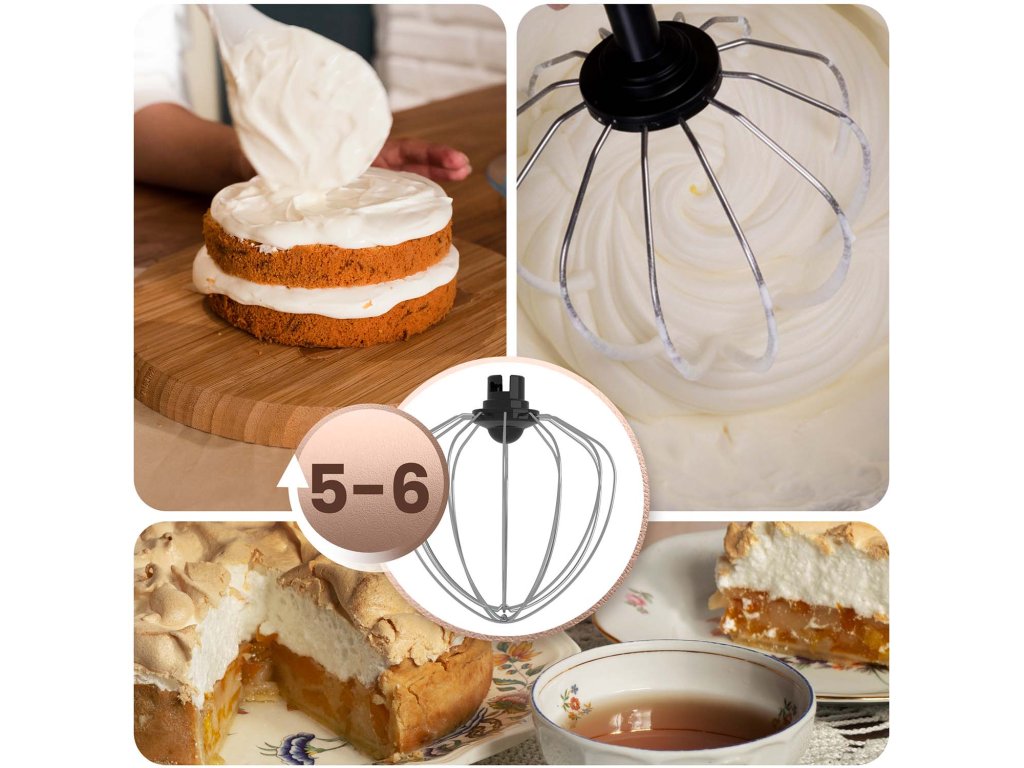 Díky metle získáte lehkou, nadýchanou konzistenci bez námahy – ideální na dorty, dezerty a dekorace.