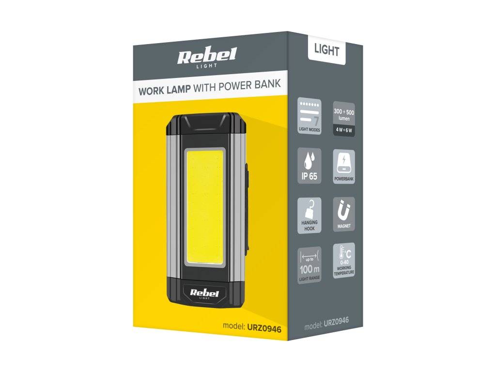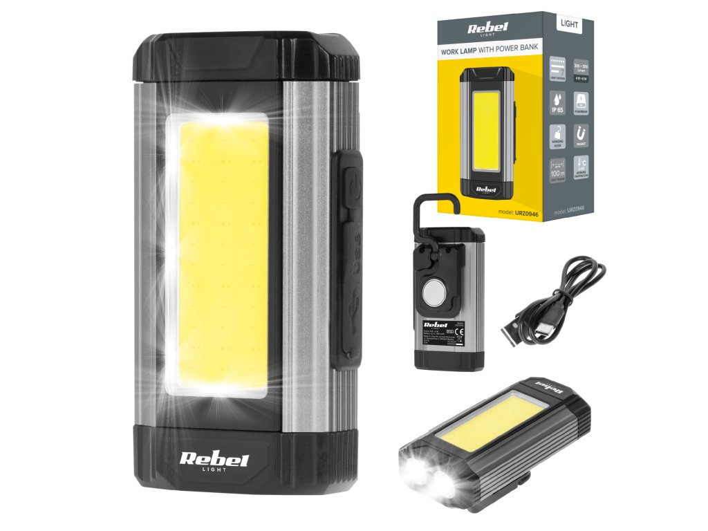 Lampa LED dílenská Rebel 15 W power banka 100 m IP65 magnet háček