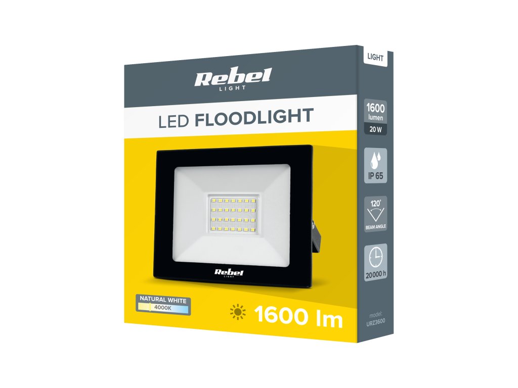 Reflektor LED Rebel o výkonu 20W je vynikajícím zdrojem světla pro různorodá použití, zajišťující neutrální bílé světlo s teplotou 4000K. Díky pevné konstrukci a vysoké účinnosti se osvědčí jak ve venkovních, tak vnitřních prostorech.