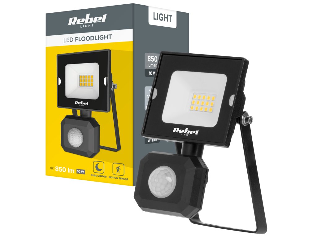 LED reflektor 10W s pohybovým a soumrakovým senzorem, 4000K, 230V
