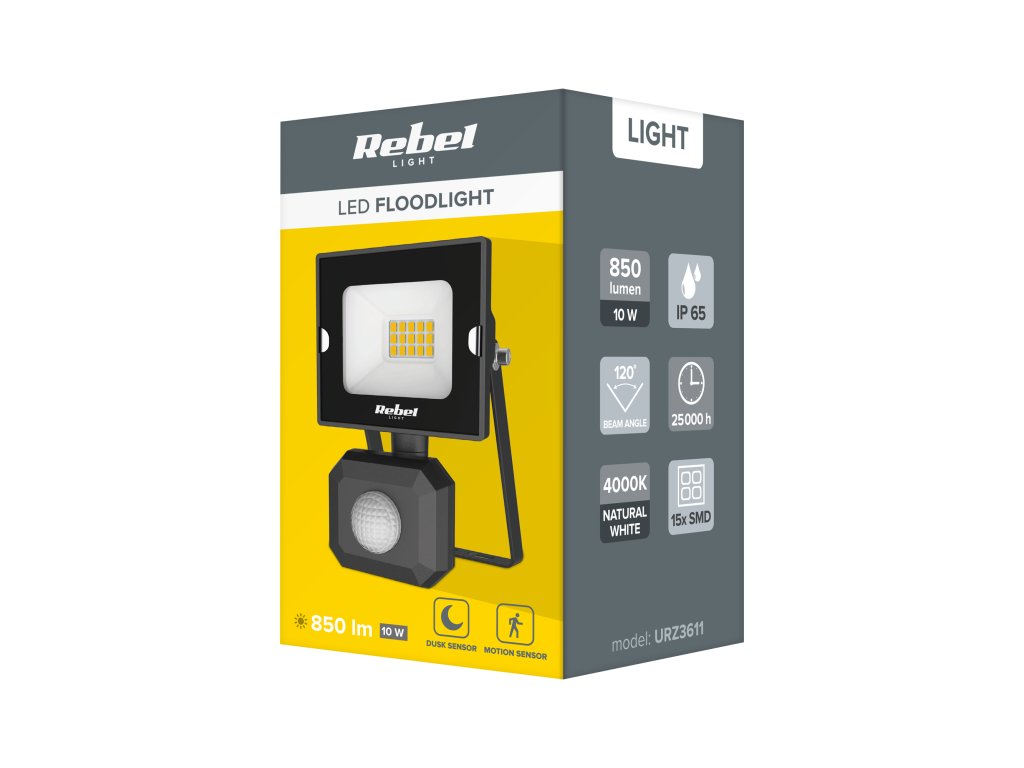 LED reflektor o výkonu 10 W je úsporné a funkční venkovní osvětlení, které díky vestavěnému pohybovému a soumrakovému senzoru automaticky přizpůsobuje svou činnost podmínkám okolí. Je ideální pro osvětlení vchodů, příjezdových cest nebo zahrad, zajišťující bezpečnost a komfort používání.