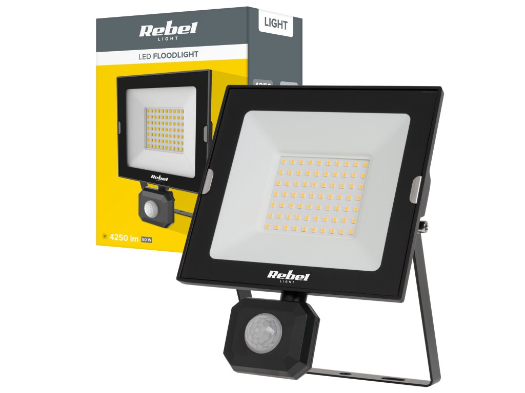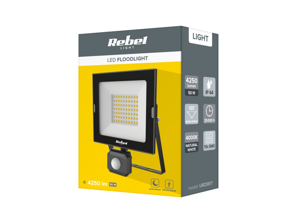 Halogenový reflektor LED lampa 50W čidlo pohybu a soumraku IP44 Rebel
