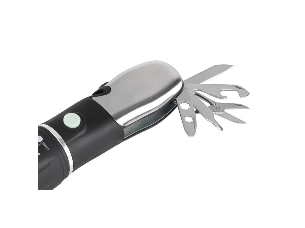 Navíc obsahuje svítilna Rebel multifunkční nástroj s 8 funkcemi, díky čemuž je užitečná v mnoha každodenních situacích. Vyrobena z odolných materiálů – hliníku a ABS – je svítilna pevná a odolná proti poškození, a její kompaktní rozměry (45 x 45 x 150 mm) a hmotnost s bateriemi 180 g zajišťují snadnou přenositelnost.