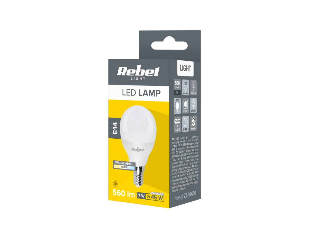 LED žárovka E14 7W G45 bílá teplá REBEL ZAR0460