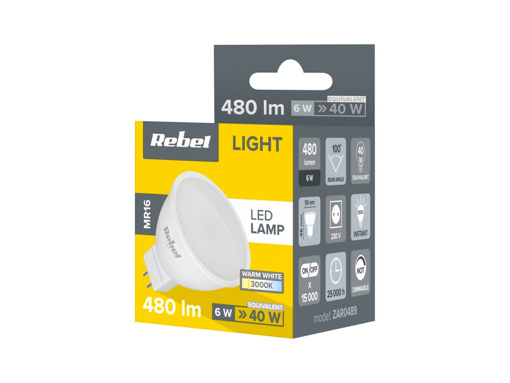 LED žárovka MR16 6W 3000K, 230V ZAR0489