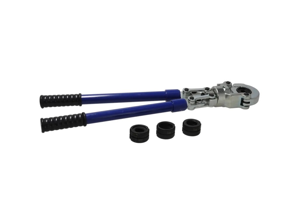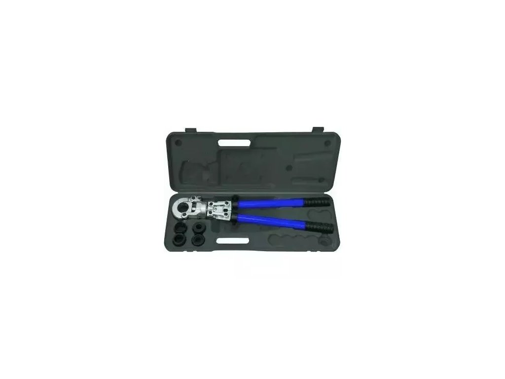 Nástroj je vhodný na lisování PEX tvarovek s průměrem 16, 20, 25 a 32 mm, má nastavitelnou délku ramene a otočnou hlavu, což usnadňuje práci v těžko přístupných oblastech. Pogumované rukojeti zvyšují pohodlí při používání. Plastové pouzdro pro snadnou přepravu a skladování.