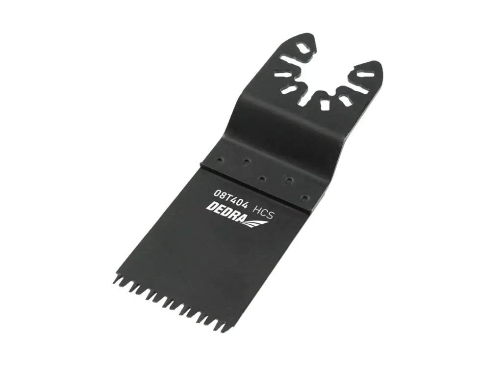 Dřevěná čepeľ pre multifunkčný nástroj DEDRA 08T404. Na řezání dřeva a materiálů na bázi dřeva. Úzká čepeľ na velmi přesné řezy, zejména v těžko přístupných oblastech, jako je duté dřevo. Čepeľ je 34 mm široká a 42 mm dlouhá. Vyrobeno z vysoce uhlíkové oceli HCS. Účinné řezání zajišťuje speciálně upravený řezný povrch, t.j. zuby s hustotou 18TPI (18 zubů na palec). Díky univerzální montáži pracovního hrotu je vhodný pro většinu víceúčelových nástrojů na trhu.