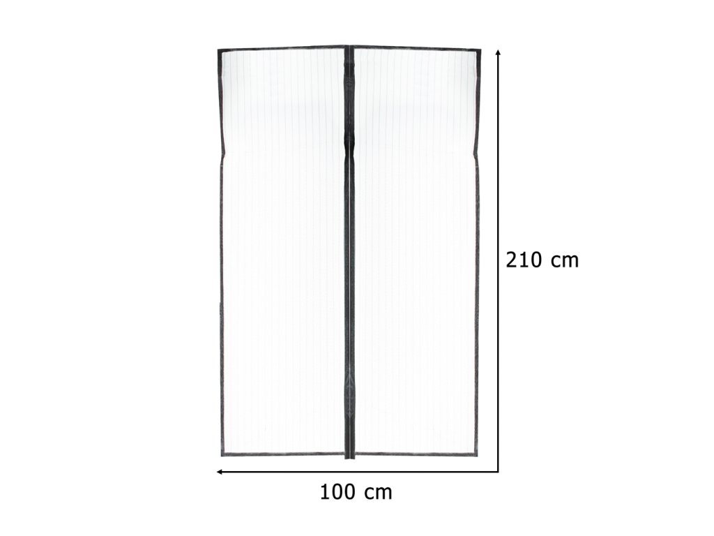Černá síťka na dveře z polyesteru o rozměrech 100 × 210 cm účinně chrání před hmyzem. Samozavírací - zavírání pomocí 7 párů blokových magnetů ## a 6 magnetických proužků. Montáž bez vrtání - pomocí suchého zipu ## nebo kolíků. Hmotnost jen 300 g.Doplňkové parametry