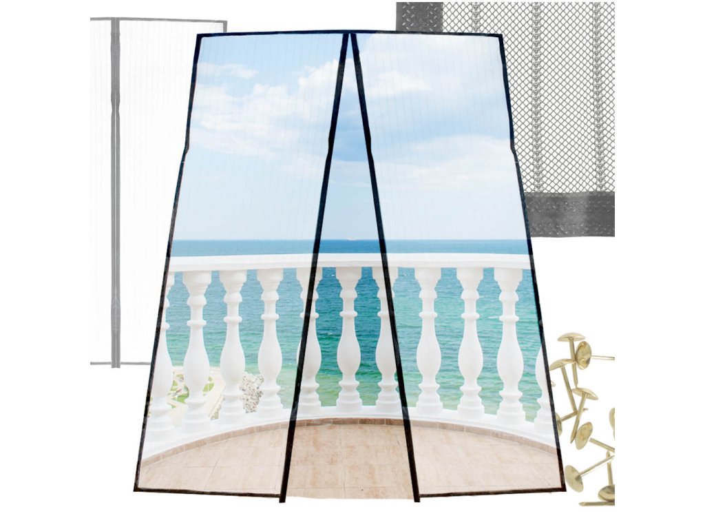 Černá síť proti hmyzu na dveře 110 × 210 cm z polyesterové síťoviny účinně chrání před hmyzem. Samozavírací - zavírání pomocí 7 párů blokových magnetů a 6 magnetických proužků. Montáž bez vrtání - pomocí suchého zipu nebo kolíčků. Hmotnost pouze 300 g.Doplňkové parametry