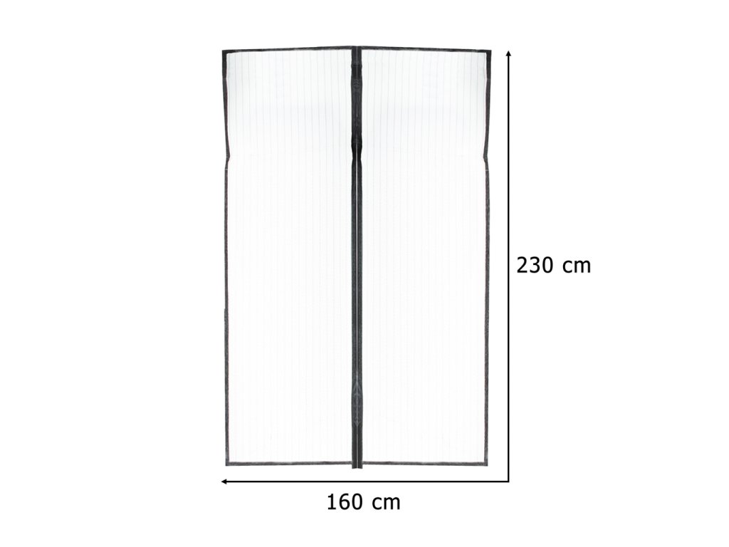 Černá síťka proti hmyzu na dveře z polyesterové síťoviny s rozměry 160 × 230 cm účinně chrání před hmyzem. Samozavíratelná - zavírání pomocí 7 párů blokových magnetů a 6 magnetických proužků. Montáž bez vrtání - pomocí suchého zipu nebo kolíků. Hmotnost jen 300 gDoplňkové parametry