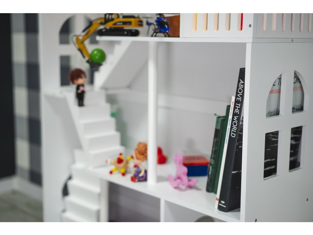 Knihovna ve tvaru domečku dokonale zapadne do dětského pokoje a dodá mu obrovský šarm! A zároveň se ukáže jako praktický kus nábytku!