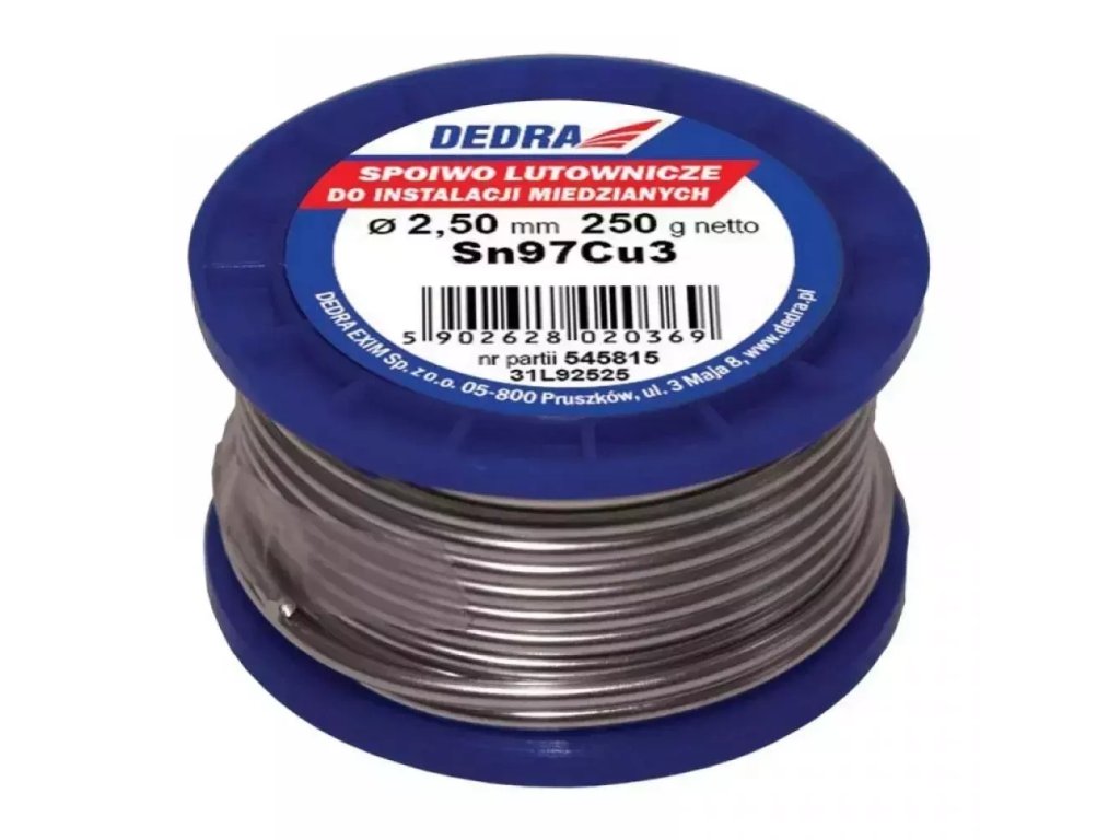 Lut s tavidlem, pájka DEDRA 31L92525 2,5mm 250g 97%SN SN97Cu3