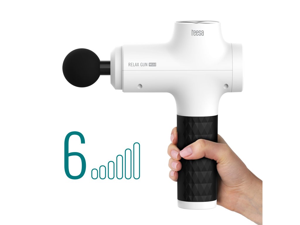 Pokud uvažujete, která masážní pistole je pro vás vhodná, vyberte model s možností regulace rychlosti. Teesa RELAX GUN MG60 je vybavena 6stupňovou regulací úderů v rozsahu od 1800 do 3000 za minutu. Nechte své svaly rychle a bezpečně regenerovat.