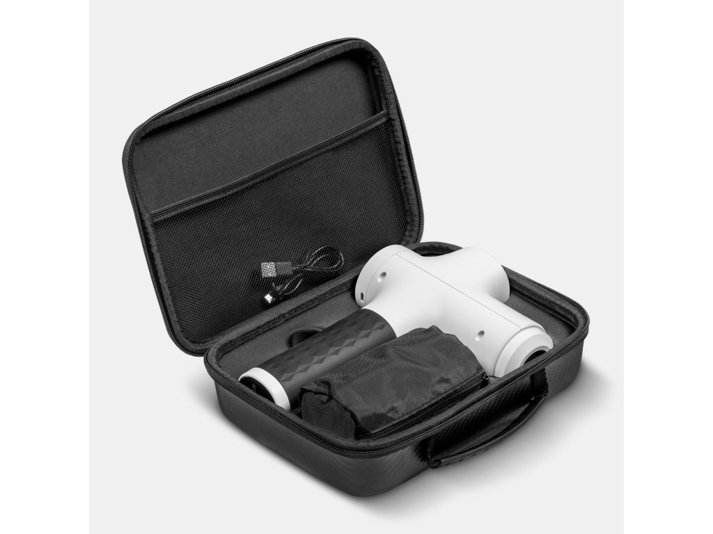 V sadě s masážérem Teesa obdržíte pevné pouzdro, které umožňuje pohodlné skladování a transport zařízení. Díky tomu můžete mít masážní pistoli vždy u sebe – doma, v práci nebo v posilovně.