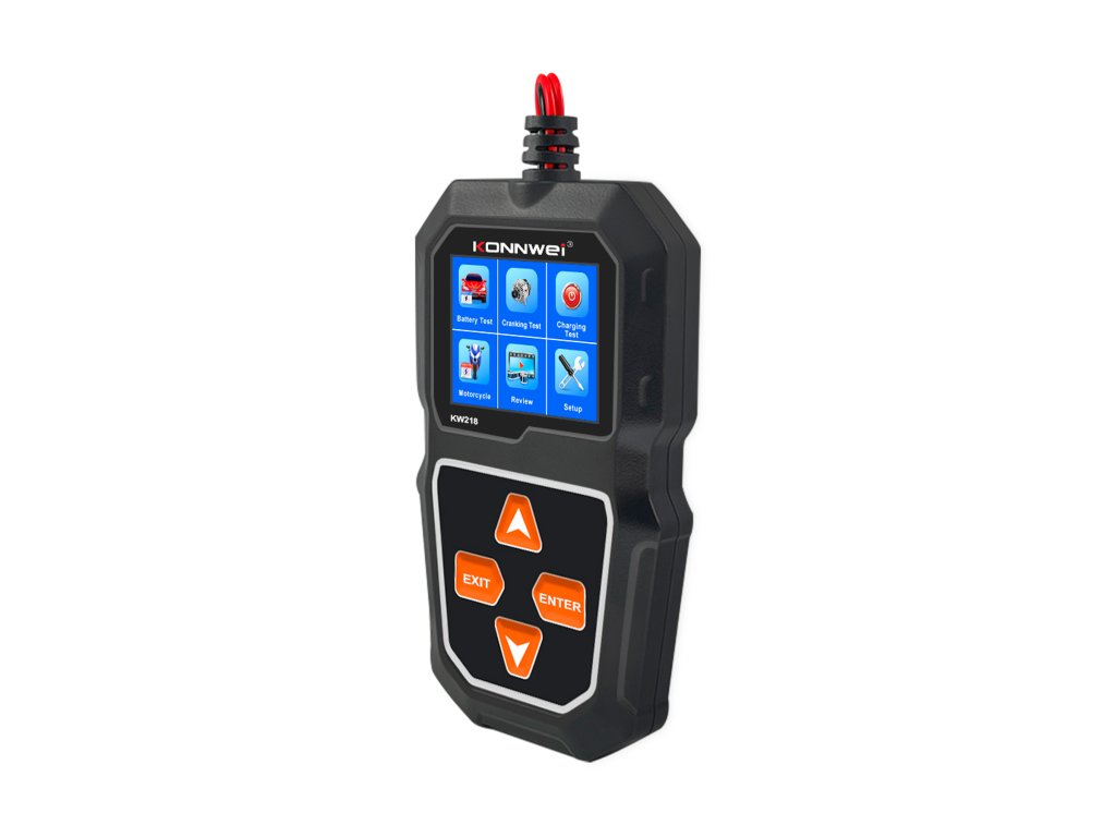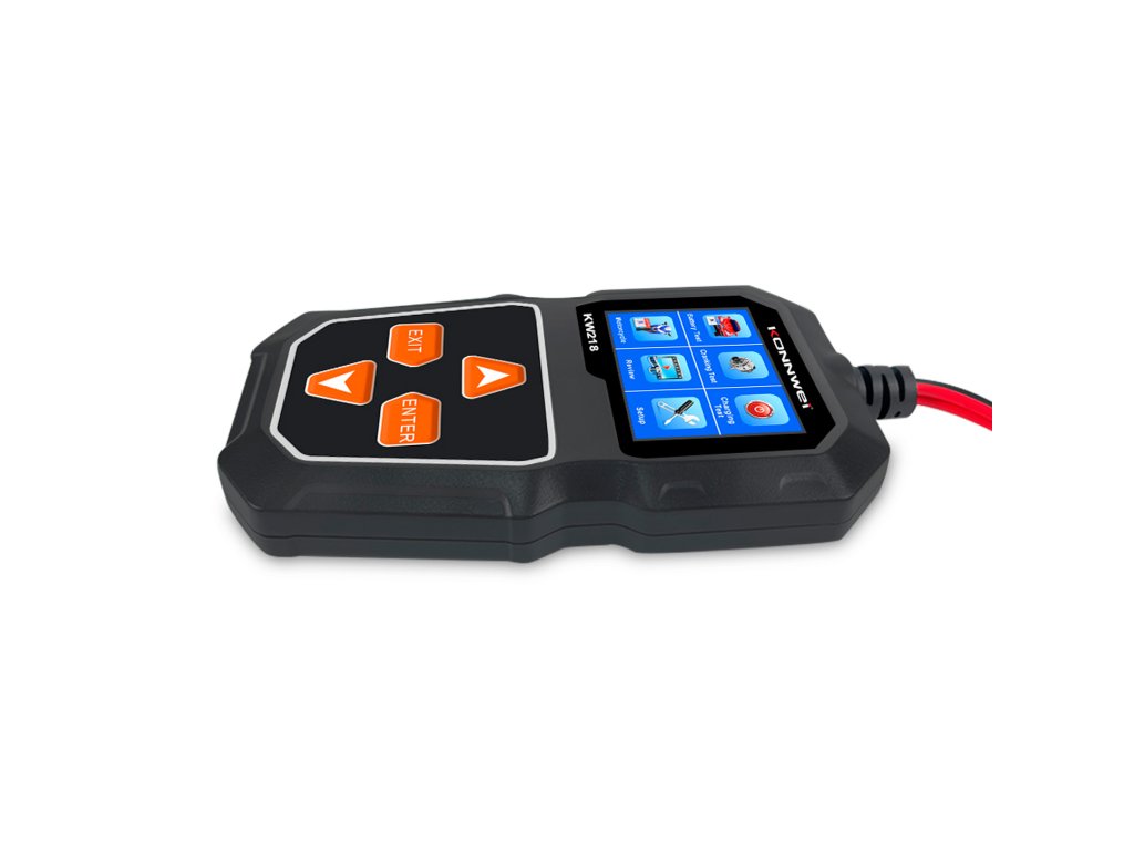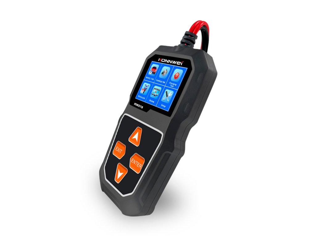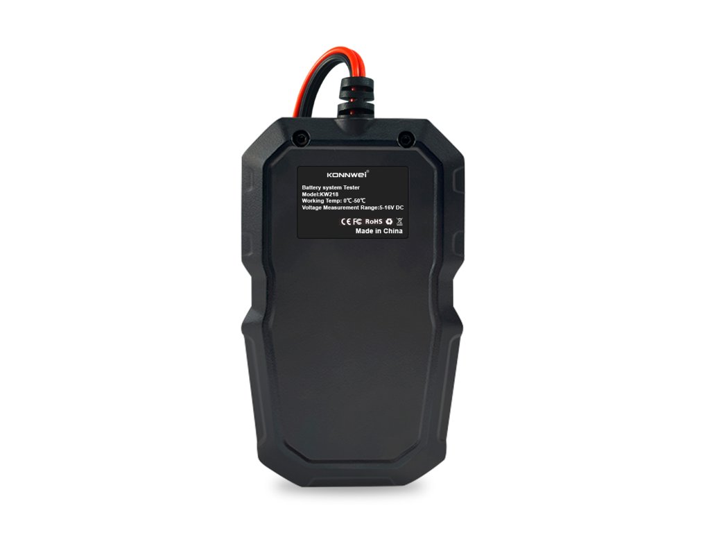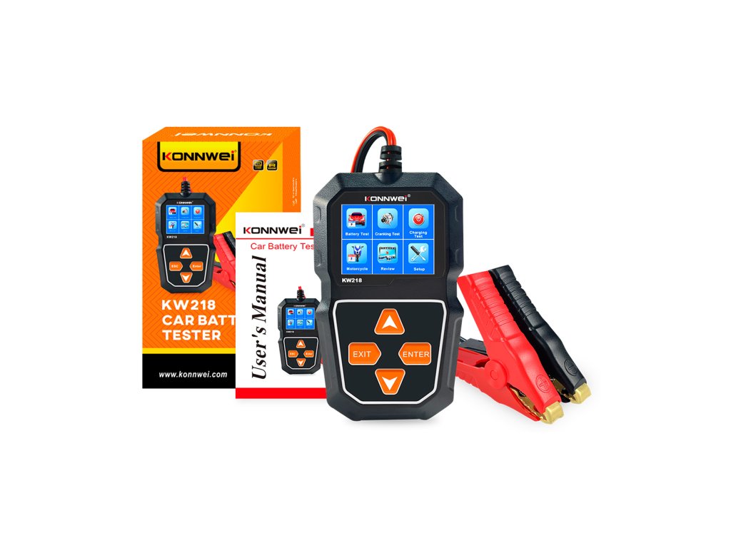 Měřič baterií Konnwei KW218 je praktický a spolehlivý nástroj pro kontrolu stavu akumulátoru v rozsahu napětí od 6 do 12 V. Umožňuje čtení klíčových parametrů, jako jsou SOC (úroveň nabití), SOH (zdravotní stav) a vnitřní odpor, což umožňuje rychle a přesně posoudit kondici baterie. Rozsah měření je od 100 do 2000 CCA a všechna data jsou zobrazena na jasném LCD displeji.