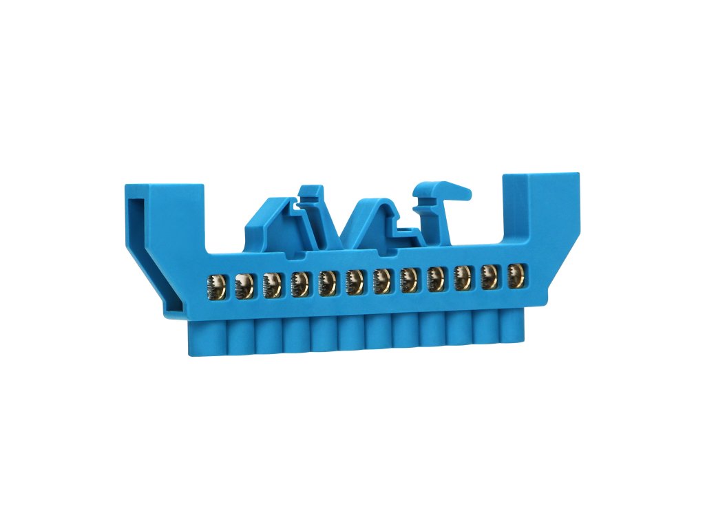 Modrá N přípojnice pro 12 kabelů