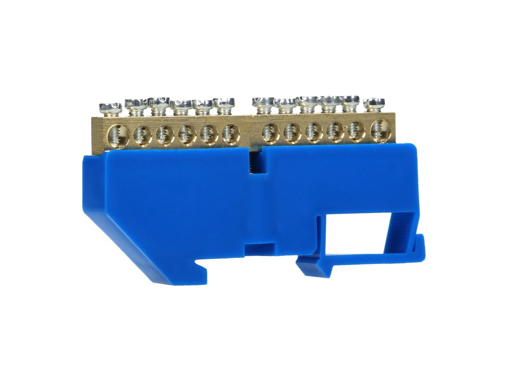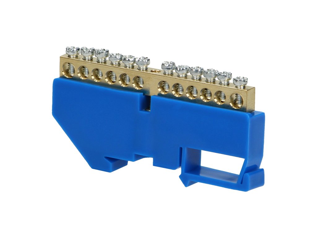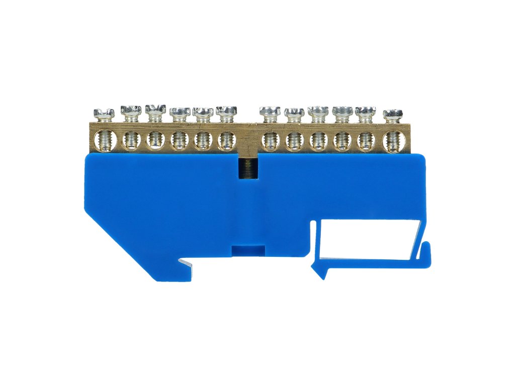 Modrá rozvodná přípojnice N, 12 svorek