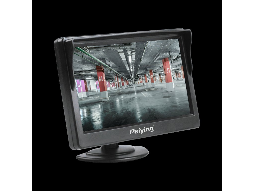 Monitor Peiying 5" je vybaven barevným TFT displejem o úhlopříčce 5 palců a rozlišení 480x272 px, což zajišťuje ostrý a čitelný obraz. Jasnost na úrovni 300 cd/m2 a kontrast 350:1 zaručují dobrou viditelnost za různých světelných podmínek. Zařízení podporuje televizní systémy PAL a NTSC a automatické přepínání mezi dvěma video kanály usnadňuje využívání různých zdrojů signálu.