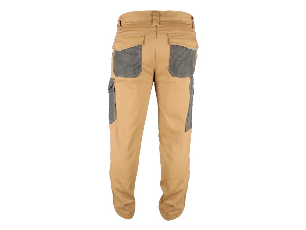 #Bezpečnostní kalhoty SLIM LINE jsou vyrobeny ze směsi bavlny a elastanu. Materiál s gramáží 270 g/m? zajišťuje dobrou cirkulaci vzduchu a volnost pohybu. Použití elastanu přispívá k trvanlivosti a odolnosti tkaniny proti roztržení. Dodatečné vyztužení v oblasti kolen. Funkční kapsy včetně kapsy na smartphone. Díky elastickému pasu se kalhoty snadno nastavují a pohodlně nosí a jsou také trojitě šité pro větší odolnost. Ideální na teplé dny na stavbě nebo v zahradě.#Vlastnosti:#97% bavlna + 3% elastan #Splňuje normu EN ISO 13688:2013 #Hmotnost 270 g/m2 #9 kapes, z toho 4 na suchý zip#Kapsa na mobilní telefon #Trojité šití #Regulace šířky pasu pomocí gumy a knoflíků#Držák klíčů #Vyztužené kapsy na kolenou se zapínáním na suchý zip #Instalované reflexní prvkyDoplňkové parametry