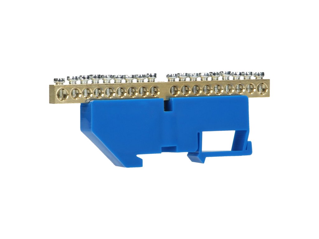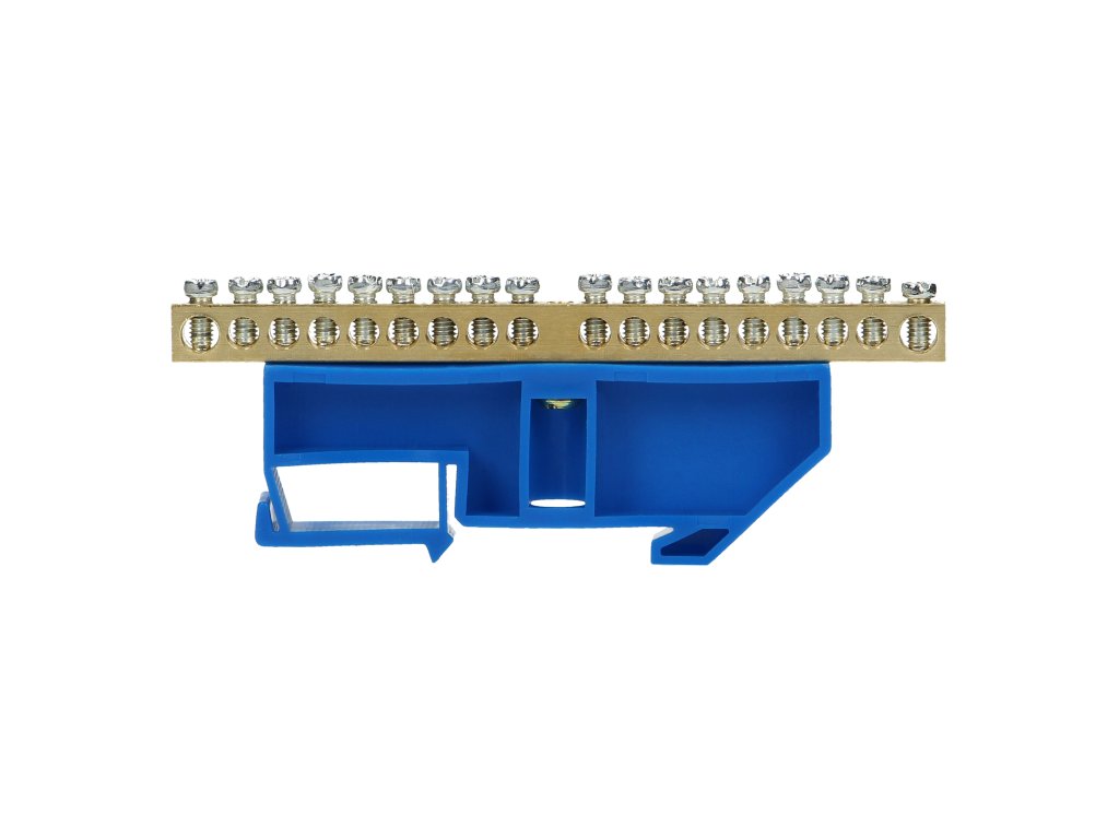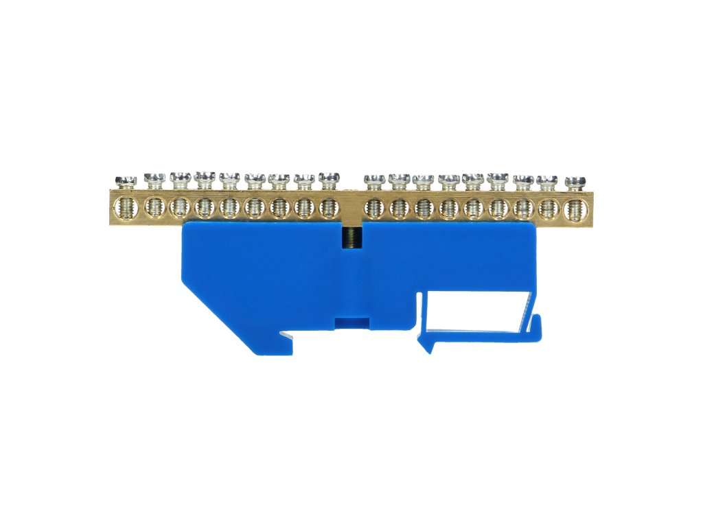 Mosazná přípojnice N pro 18 vodičů - modrá