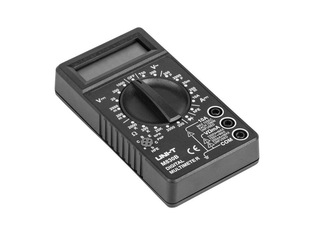 ROZSAHY MĚŘENÍ: Stejnosměrné napětí DC: 200 mV / 2000 mV / 20 V / 200 V / 1000 V ±(1,5%+5) Střídavé napětí AC: 200 V / 750 V ±(2%+10) Proud DC: 200 µA / 2000 µA / 20 mA / 200 mA / 10 A ±(2%+10) Odpor: 200 Ohm / 2000 Ohm / 20 kOhm / 200 kOhm / 2000 kOhm; ±(2%+10) Měření hFE tranzistorů Test diod DALŠÍ FUNKCE Ruční změna měřicích rozsahů Indikátor nízké úrovně baterie OBECNÉ VLASTNOSTI Maximální odečet: 2000 Napájení: Baterie 9 V (6F22) Vzorkování: cca 3/s Spotřeba proudu: cca 5 mA Příslušenství: baterie, měřicí vodičeROZSAHY MĚŘENÍ: