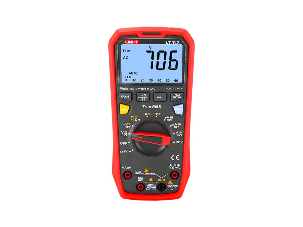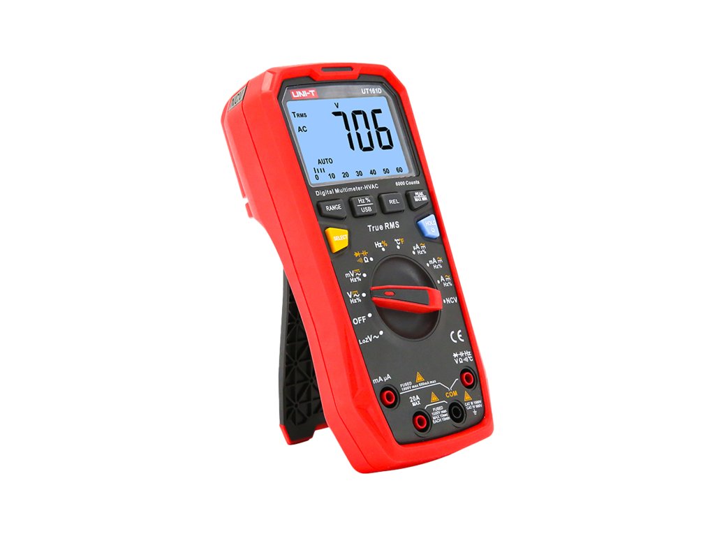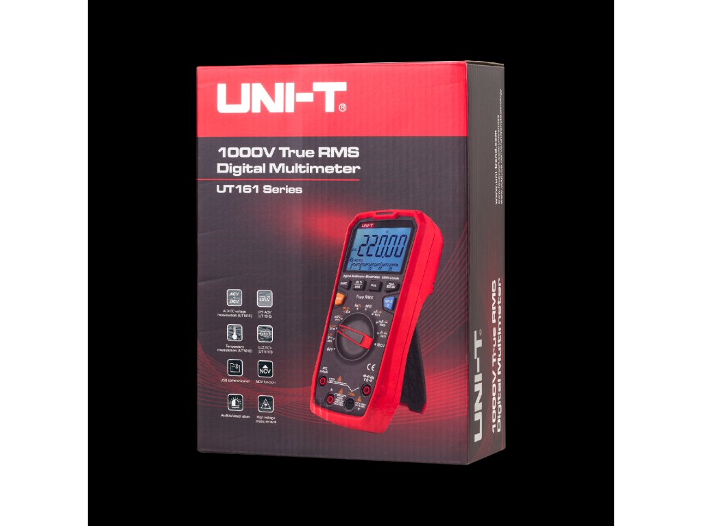 ROZSAHY MĚŘENÍ Stejnosměrné napětí DC: 1000 V ±(0,5%+3) Střídavé napětí AC: 1000 V ±(1%+3) Stejnosměrný proud DC: 20 A ±(1%+2) Střídavý proud AC: 20 A ±(1,2%+5) Odpor: 60 MOhm ±(1%+2) Kapacita: 60 mF ±(3%+5) Frekvence: 10 MHz ±(0,1%+4) Teplota: -40°C ~ 1000°C ±(1%+3), -40°F ~ 1832°F ±(1%+6) Střída: 0,1% ~ 99,9% ±(2%+5) Test diod Test kontinuity obvodu DODATKOVÉ FUNKCE Automatická změna měřicích rozsahů Měření True RMS Měření elektromagnetického pole Dolní propust Zmrazení posledního zobrazení Uložení špičkové hodnoty Relativní režim měření Uložení MAX/MIN/špičkové hodnoty Analogový bargraf: 31 segmentů Automatické vypnutí Maximální odečet: 6000 OBECNÉ VLASTNOSTI Napájení: 4x baterie 1,5 V (R03) Rozměry: 190 x 90 x 50 mm Hmotnost produktu: 350 g Příslušenství: baterie, měřicí kabely, USB kabel, teplotní sonda, adaptérROZSAHY MĚŘENÍ