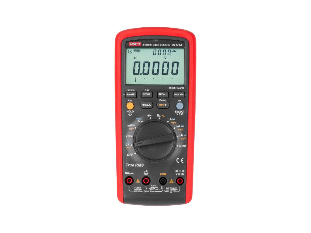 Univerzální digitální měřič UT171A s dvojitým 4,5místným displejem a funkcí TRUE RMS je užitečný jak pro profesionály, tak pro osoby, které rády kutí v pohodlí svého domova. Díky němu lze provádět rychlá měření všech základních elektrických veličin a záznam měření. Přístroj má unikátní funkci V.F.C. - speciální dolnopropustný filtr eliminující vysokofrekvenční rušení sítě, které může negativně ovlivnit výsledek měření.