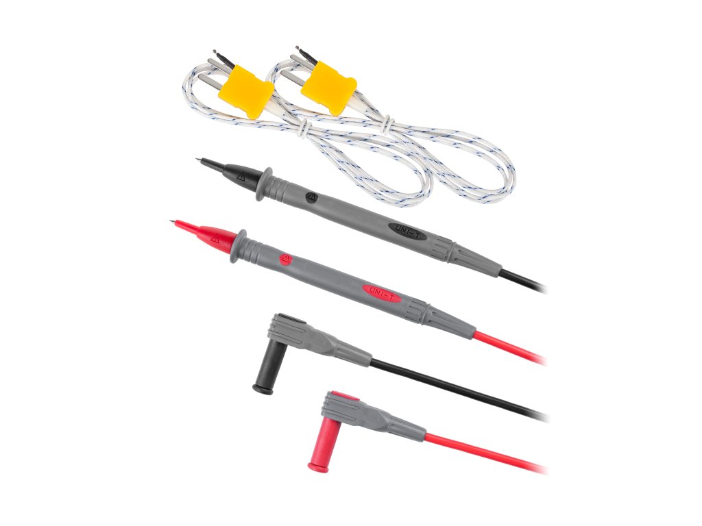 Příslušenství: baterie, měřící kabely, USB kabel, 2x sonda pro měření teploty, teplotní měřící zásuvka, nabíjecí zásuvka, síťový adaptér, pouzdro