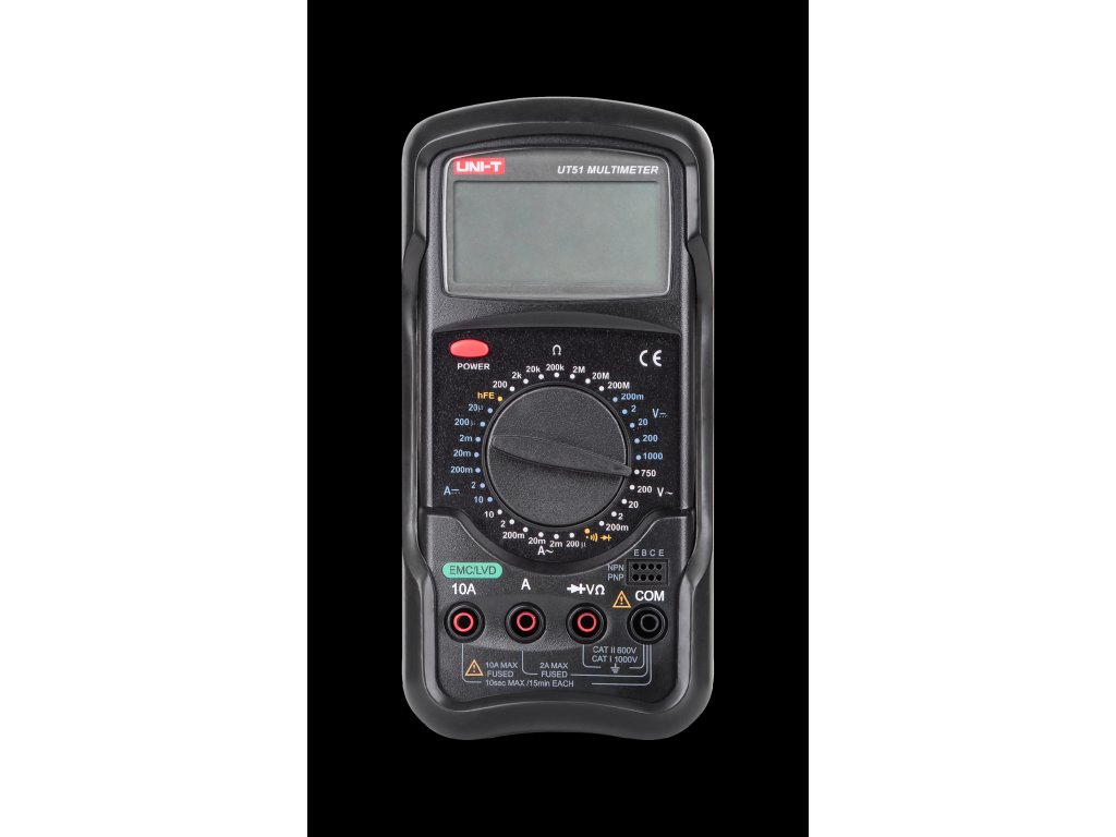 UT51 nabízí rozšířené měřicí možnosti zahrnující jak stejnosměrné napětí (DC) do 1000 V, tak střídavé (AC) do 750 V. Zařízení také umožňuje měření stejnosměrného a střídavého proudu až do 10 A. Široký rozsah měření odporu až do 200 MOhm a funkce jako test diod, měření hFE tranzistorů a kontrola kontinuity obvodu činí z UT51 všestranný diagnostický nástroj.