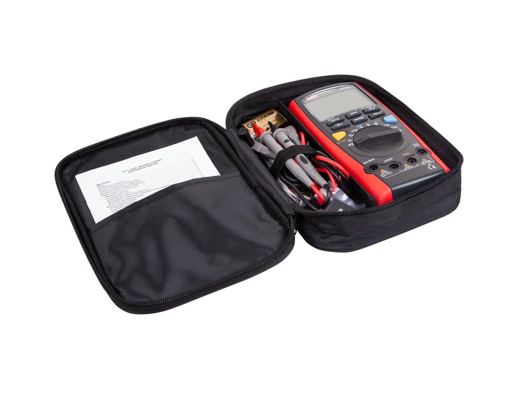 Měřič UT71A je napájen baterií 9 V (6F22) a indikátor nízkého napětí baterie zaručuje, že uživatel vždy ví, kdy ji vyměnit. Robustní konstrukce o hmotnosti 384 g a rozměrech 200 x 93 x 40 mm činí přístroj odolným a pohodlným na používání. V balení s měřičem jsou zahrnuty nezbytné příslušenství jako měřicí vodiče, USB kabel a pouzdro, což umožňuje plně využít jeho možnosti ihned po rozbalení.