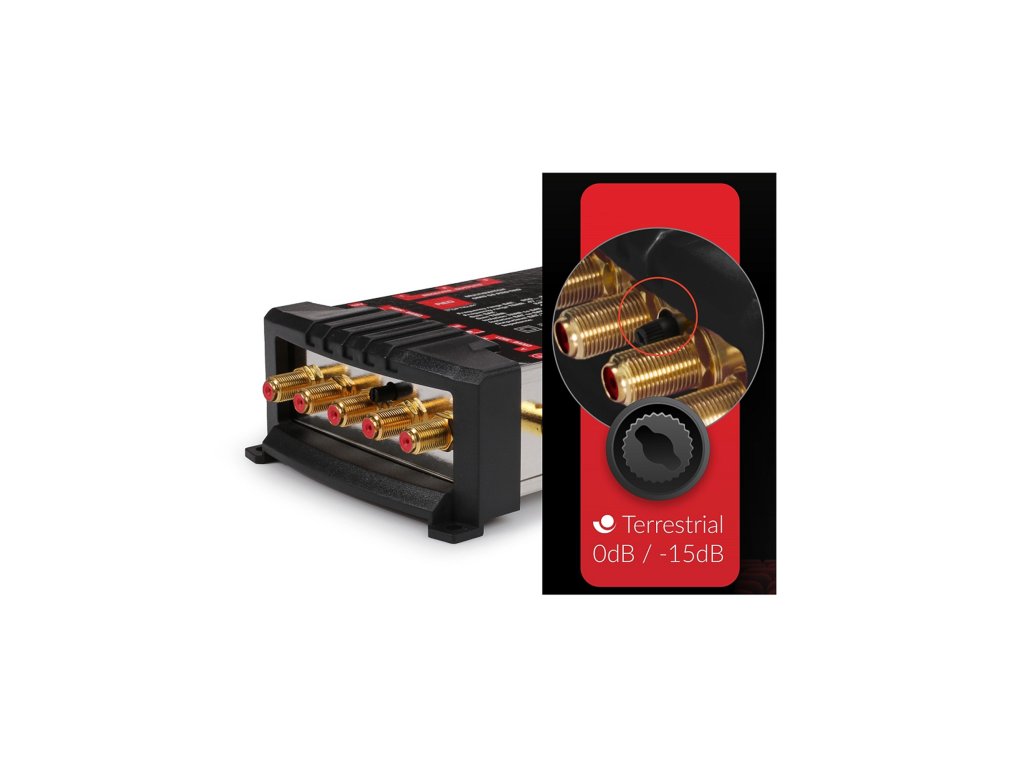 Multiswitch je určen pro instalaci anténního systému satelitní televize DVB-S2 a pozemní DVB-T2. Pozlacené konektory výrazně snižují ztráty signálu na připojení anténních kabelů a zabraňují oxidaci. Multiswitch automaticky rozpoznává druh signálu, který bude přenášen do tunerů. Instalace musí zahrnovat připojení multiswitchu k satelitní anténě s průměrem alespoň 0,8 m a konvertoru Quattro nebo Quad a pozemní televizní antény. Rozdělení satelitního a pozemního signálu vycházejícího z multiswitchu se uskutečňuje pomocí koncových účastnických zásuvek. Napájení multiswitchu je zajištěno prostřednictvím externího napájecího zdroje, čímž se eliminuje jev zvýšeného pracovního tepla, které je častou příčinou poškození zařízení.