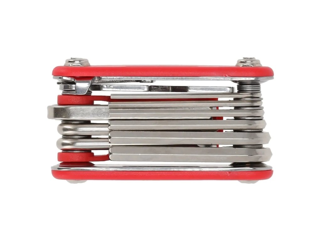 Sada obsahuje patnáct různých nástrojů, které umožňují provádět mnoho oprav. Imbusové klíče jsou ideální pro nastavení šroubů v různých částech kola, jako jsou sedlo, řídítka nebo brzdy. Šroubováky jsou užitečné pro dotahování a povolování šroubků v cyklistickém vybavení, zatímco čtvercový klíč je užitečný pro specifická spojení v některých typech kol. Kromě toho sada obsahuje nasazovací nástavce, ploché klíče a speciální klíč na dráty, který je nezbytný pro nastavení napětí drátů, což je klíčové pro udržení kola v dobrém stavu.