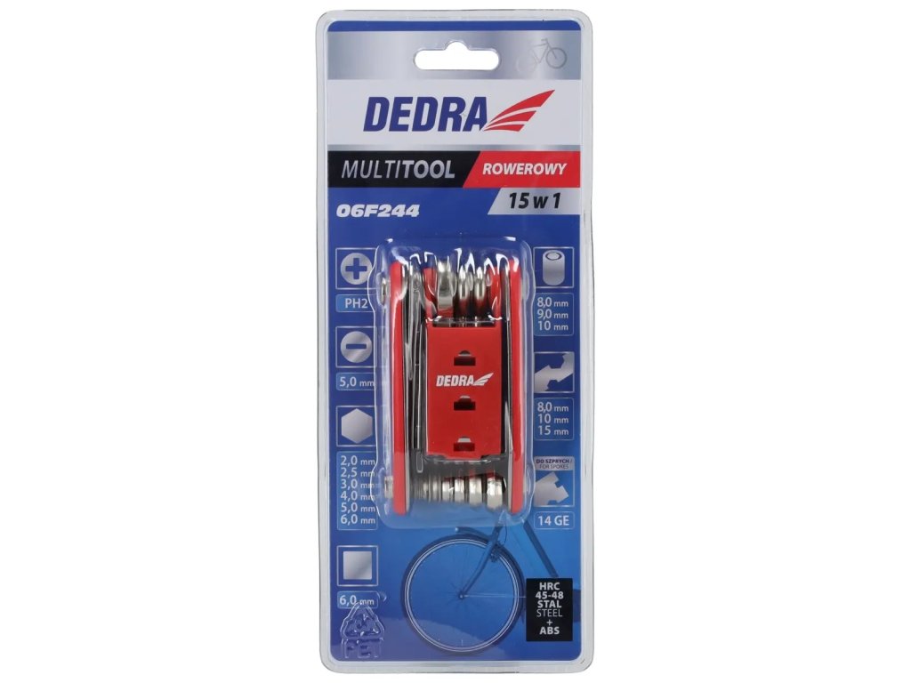 Víceúčelový cyklistický nástroj DEDRA 06F244 je nezbytný gadget pro každého cyklistu.