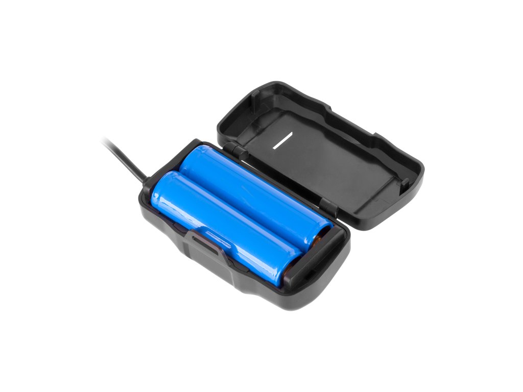 Vybavena dvěma bateriemi o napětí 3,7 V a kapacitě 1500 mAh, čelovka funguje až 5 hodin na plné nabití. Doba nabíjení trvá až 8 hodin.