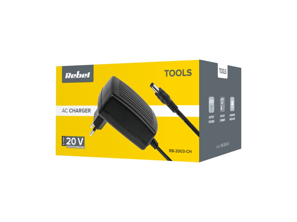 Nabíječka RB-2003-CH Rebel Tools je určena pro baterie RB-2001 a RB-2002. Tímto garantuje ideální přizpůsobení a plnou účinnost nabíjení.