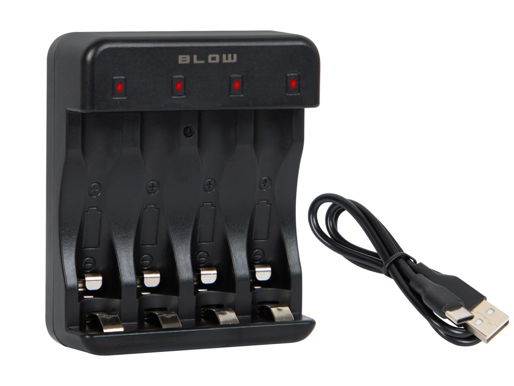 Funkční a kompaktní USB nabíječka typu RC4B, umožňující rychlé nabíjení 1–4 akumulátorů Ni-MH/Ni-Cd. LED indikátor informuje o dokončení procesu nabíjení změnou barvy na zelenou.