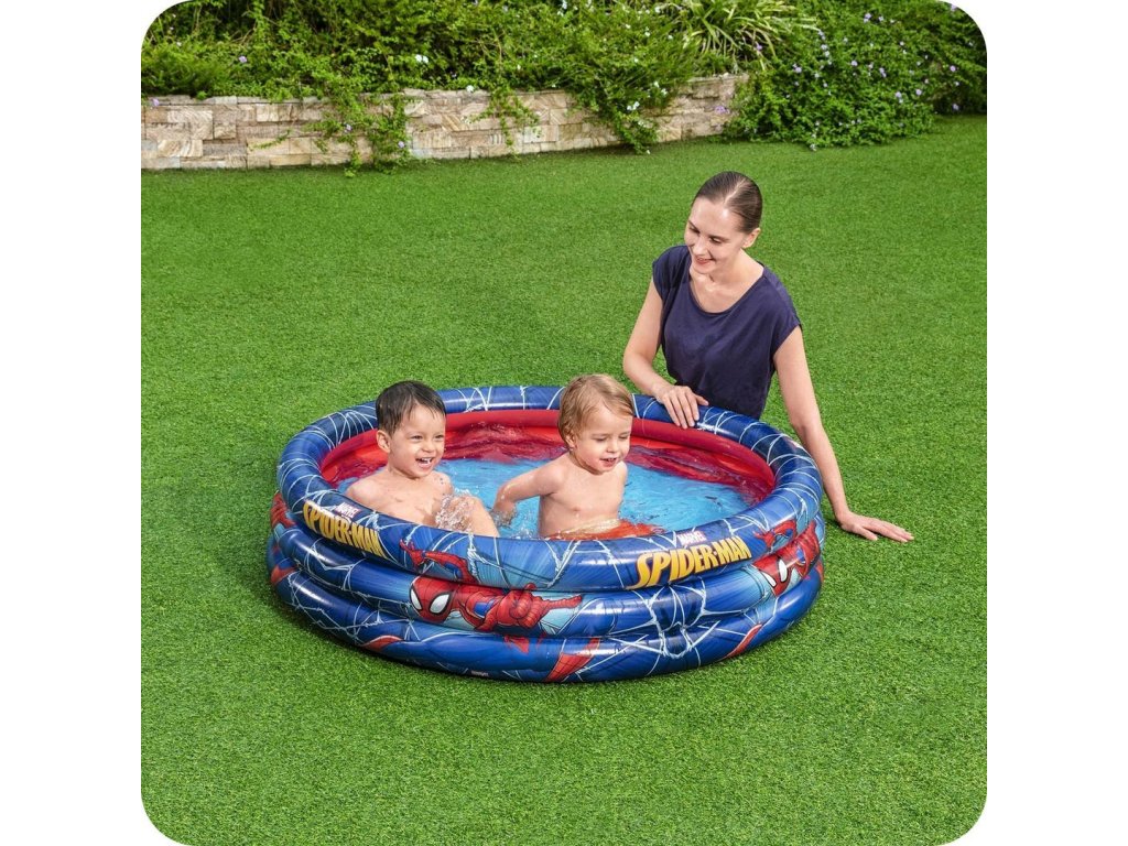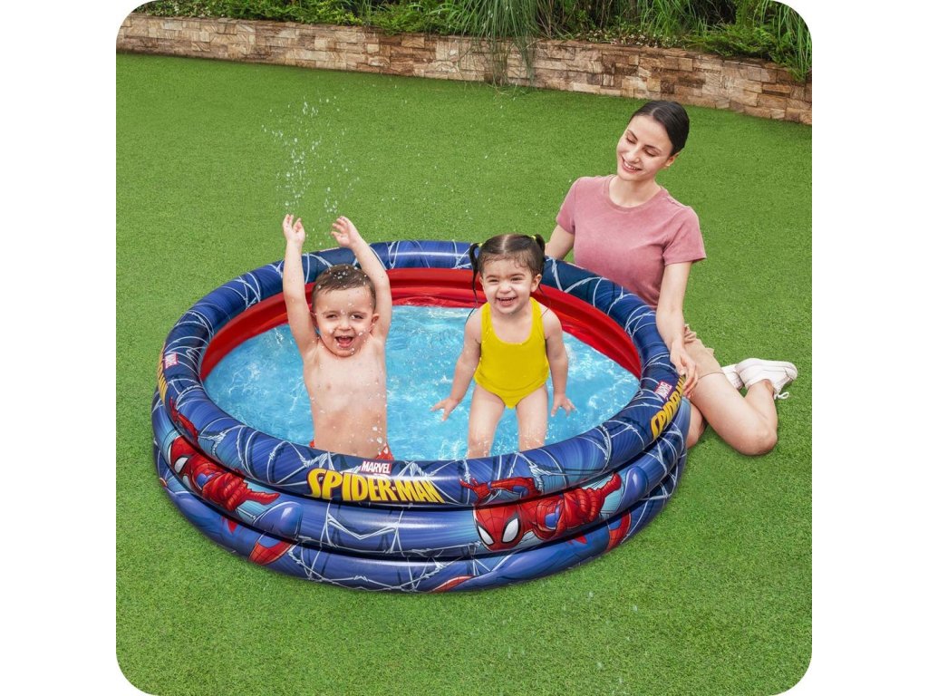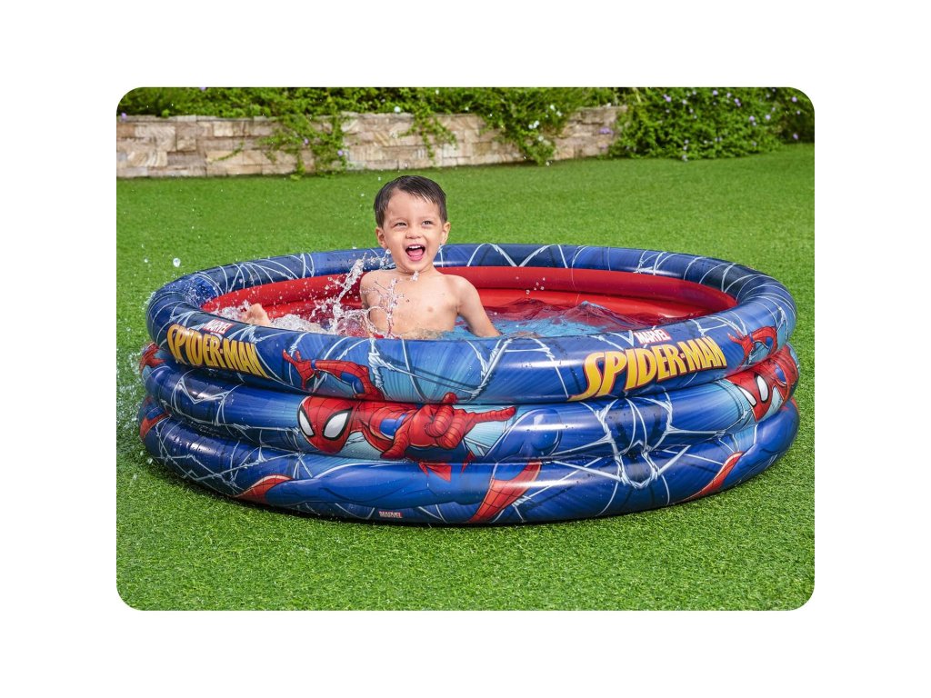 Tento bazén s krásným vzorem Spider-mana je ideální příležitostí, jak namísto nudy doma vyjít ven a v světle horkých slunečních paprsků se osvěžit ve vodě.