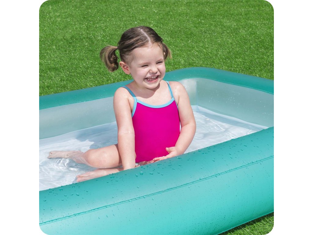 Nádrž má rozměry 165 x 104 x 25 cm a její stěny jsou odolné a silné, takže se dítě může klidně o ně opírat.