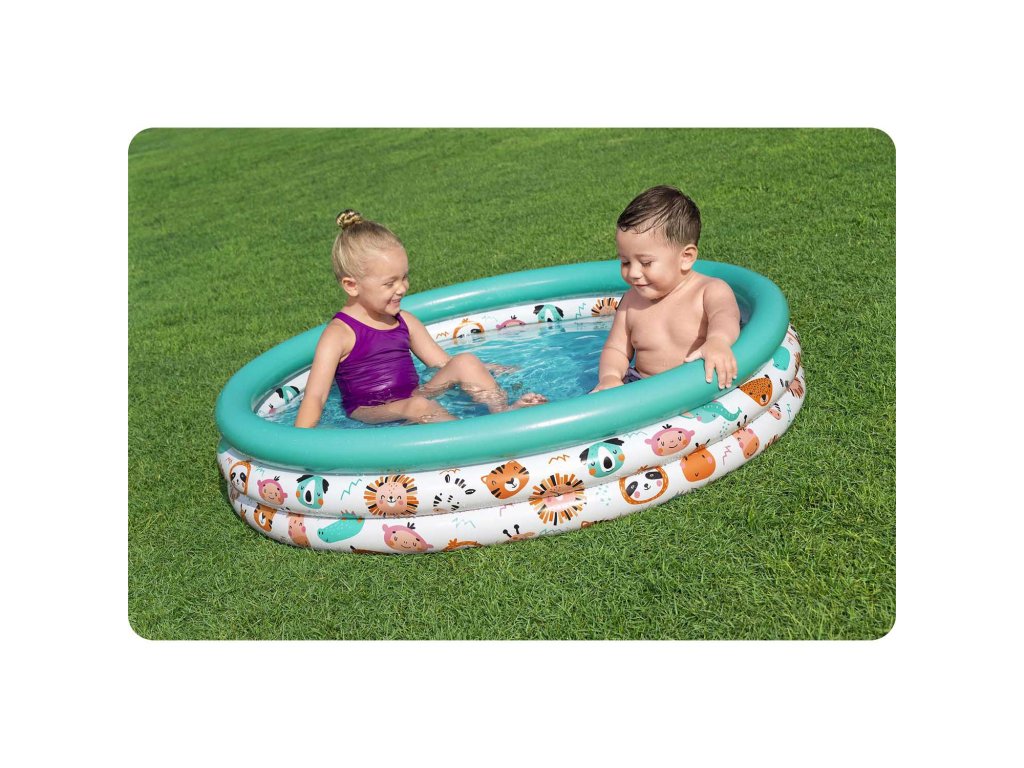 Bazén má měkké nafukovací stěny pro malé děti a nádherné barvy.