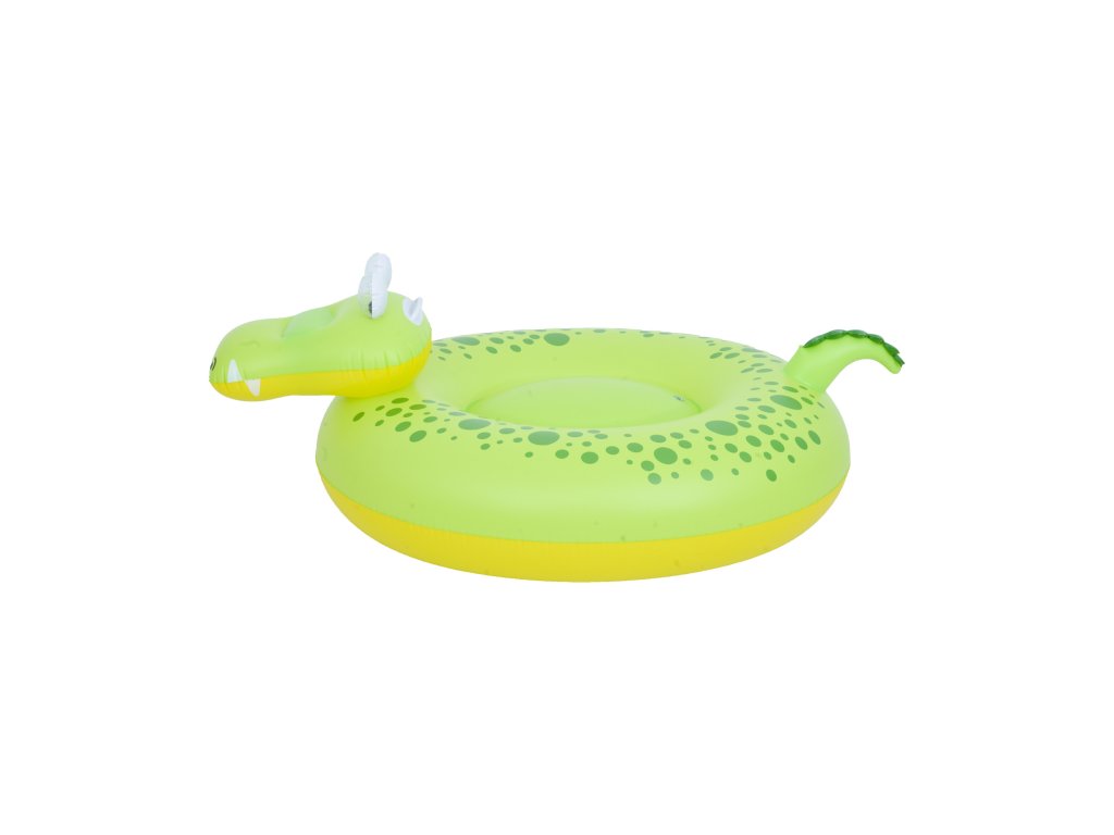 Krokodýl SUNCLUB není jen kruh – je to vodní postava s charakterem! Zelená barva, vyčnívající čenich a pohyblivé oči tvoří zábavný, přátelský vzhled, který si děti zamilují. Je to skvělý způsob, jak povzbudit nejmenší k trávení času ve vodě a rozvíjet jejich představivost během vodních dobrodružství.