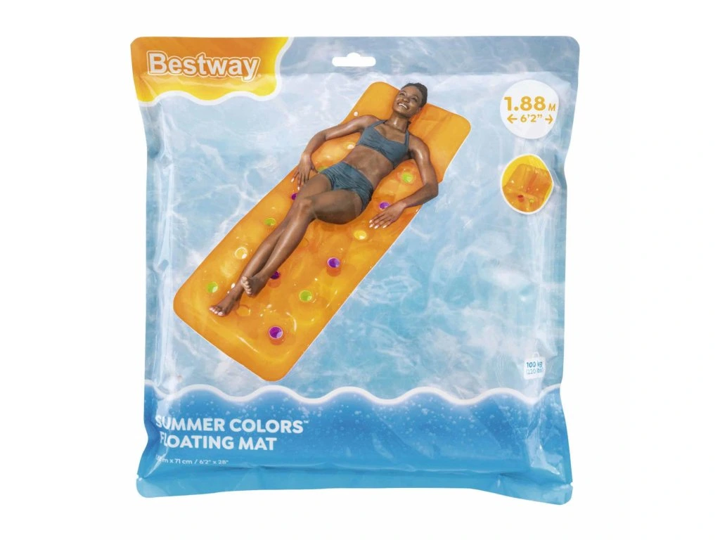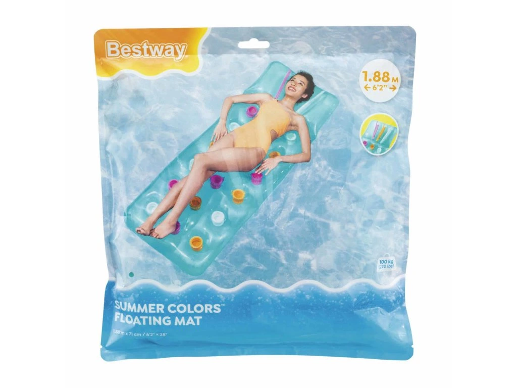 Navržený, aby povzbudil děti (a dospělé) k pohybu a dobré zábavě na čerstvém vzduchu, tento bazénový matrace Bestway® Fashion je testovaný na kvalitu a staví na čisté radosti! Plavte na slunci ve velkém stylu a pohodlí. Matrace Fashion je dostupná ve 2 různých barvách a má barevné kapsy. Vybavený spirálovými nosnými prvky s nafukovacími polštáři, šplouchání se na slunci nikdy nebylo lepší!