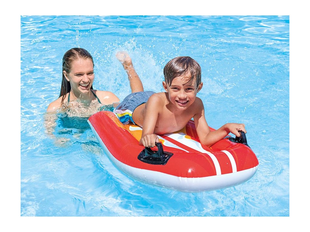 Plovací deska 112 x 62 cm INTEX INTEX 58165 Nafukovací plovací deska pro děti. Deska má dvě silné úchyty, díky kterým dítě na ní nebude sklouzávat během vodních her! Plovací deska pro děti Intex slouží nejen k zábavě - je také velmi užitečná při učení plavání. Okouzlí každé dítě, které rádo hraje ve vodě nebo teprve objevuje tuto fantastickou zábavu. Nafukovací deska Intex o rozměrech 112 x 62 cm má 2 vzduchové komory z PVC. Dále dva silné úchyty zajišťují pohodlí během používání. Praktický matrac se hodí během odpočinku u vody - volné plavání na jejím povrchu a využívání výhod slunečních paprsků je osvědčeným receptem na úspěšnou dovolenou! Součástí balení je opravná záplata. Hlavní vlastnosti: originální design 2 vzduchové komory 2 úchyty Technické údaje: Rozměry: 112 x 62 cm Materiál: PVC Tloušťka PVC: 0,25 mm Hmotnost: 0,69 kg Vzduchové komory: 2 Doporučený věk: od 6 let Upozornění: Ve vodě určené pouze pro použití ve vodě, kde dítě cítí dno pod nohama, a pouze pod dohledem dospělé osoby. Kód produktu: 58165;Doplňkové parametry