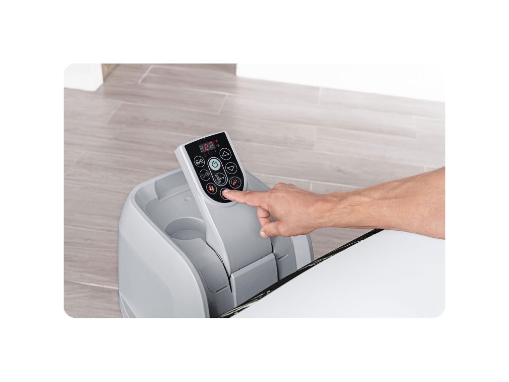 . Funguje v rozsahu od 20 do 40 stupňů Celsia a dává vám kontrolu nad situací.Snadno můžete aktivovat masážní režim, změnit teplotu vody nebo aktivovat činnost pumpy!