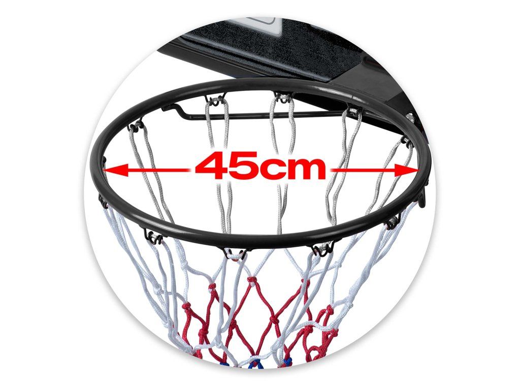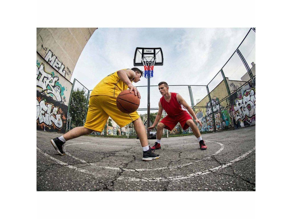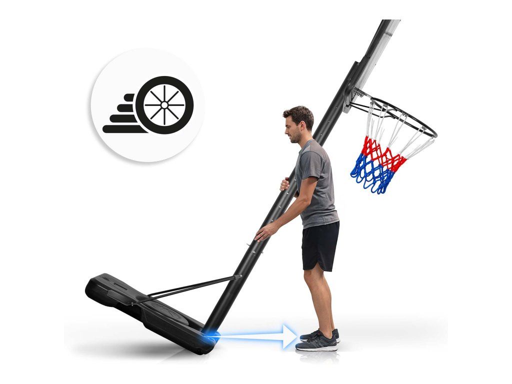 Dvě robustní transportní kolečka v základně znamenají, že přesunutí koše je otázkou několika sekund. Z hřiště na příjezdovou cestu, z garáže na sídlištní hřiště – bez zvedání, bez složitého přenášení. Stačí posunout a hrát.Vyskočte výš. Hrajte lépe.