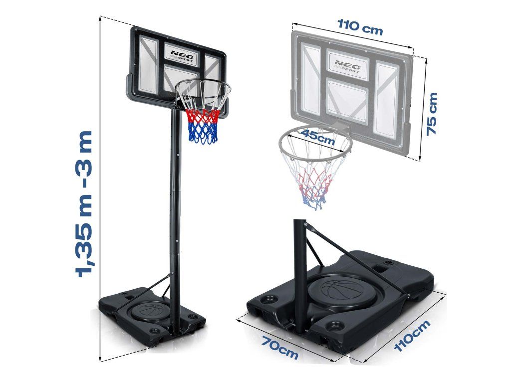 Basketbalový koš s nastavitelnou výškou 1,35 m - 3 m pro děti i dospělé Neo-sport