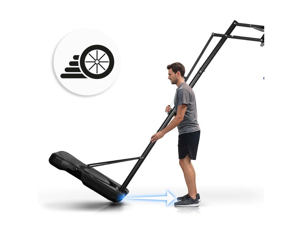 Dvě pevná transportní kolečka v základně umožňují přemístění koše během několika sekund. Z hřiště na příjezdovou cestu, z garáže na sídlištní hřiště – bez zvedání, bez složitostí. Prostě přesuň a hraj.