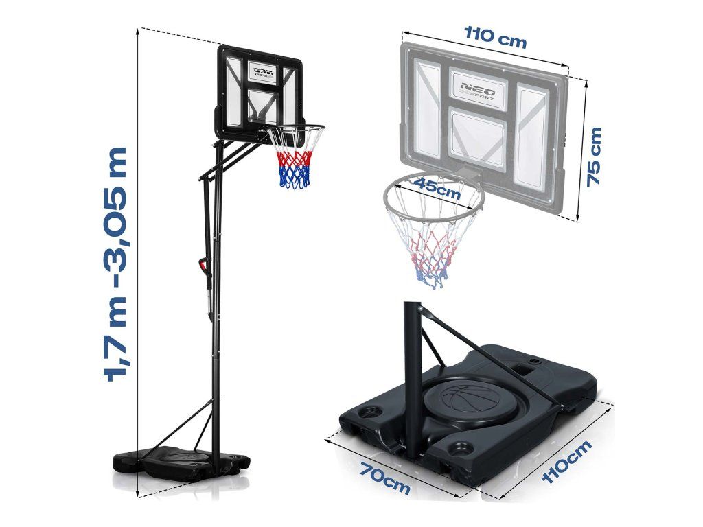 Nastavitelný basketbalový koš 170–305 cm, stabilní, velký Neo-Sport NS-283
