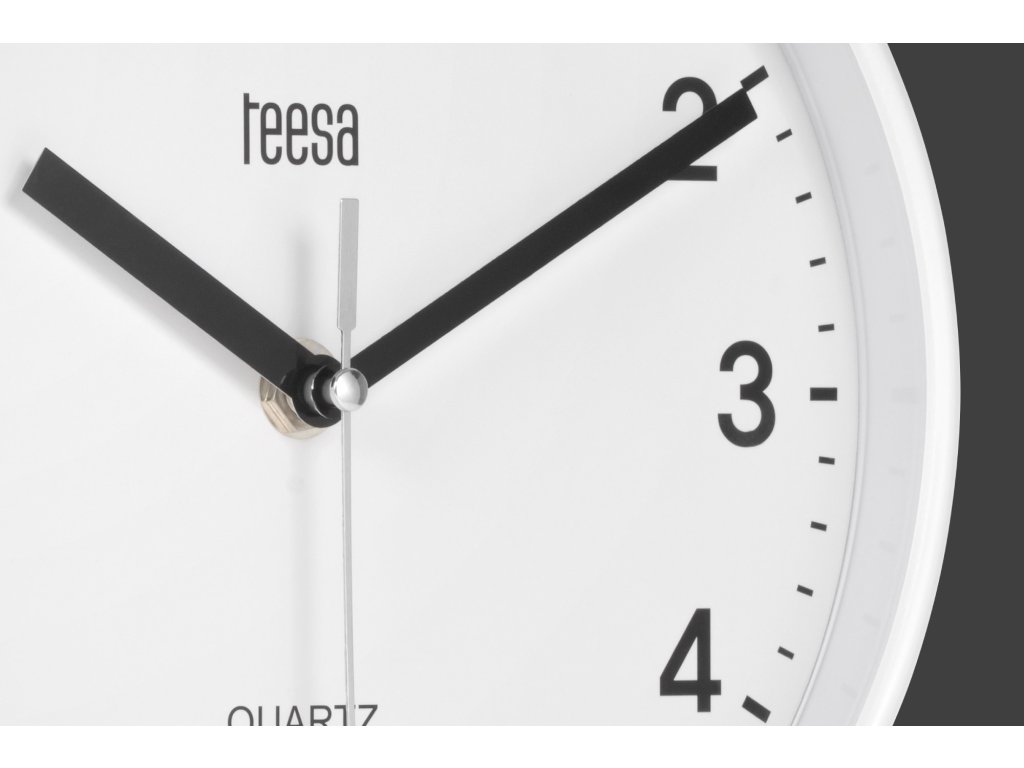 Hodiny Teesa mají pohodlný a snadno použitelný knoflík, který umožňuje jednoduché nastavení aktuálního času. Mechanismus křemenného pohybu ručiček zajišťuje přesné měření času a minimalizuje riziko chyb. Přesnost, kterou se nástěnné hodiny Teesa vyznačují, vám umožňuje na ně spolehnout v každé situaci.