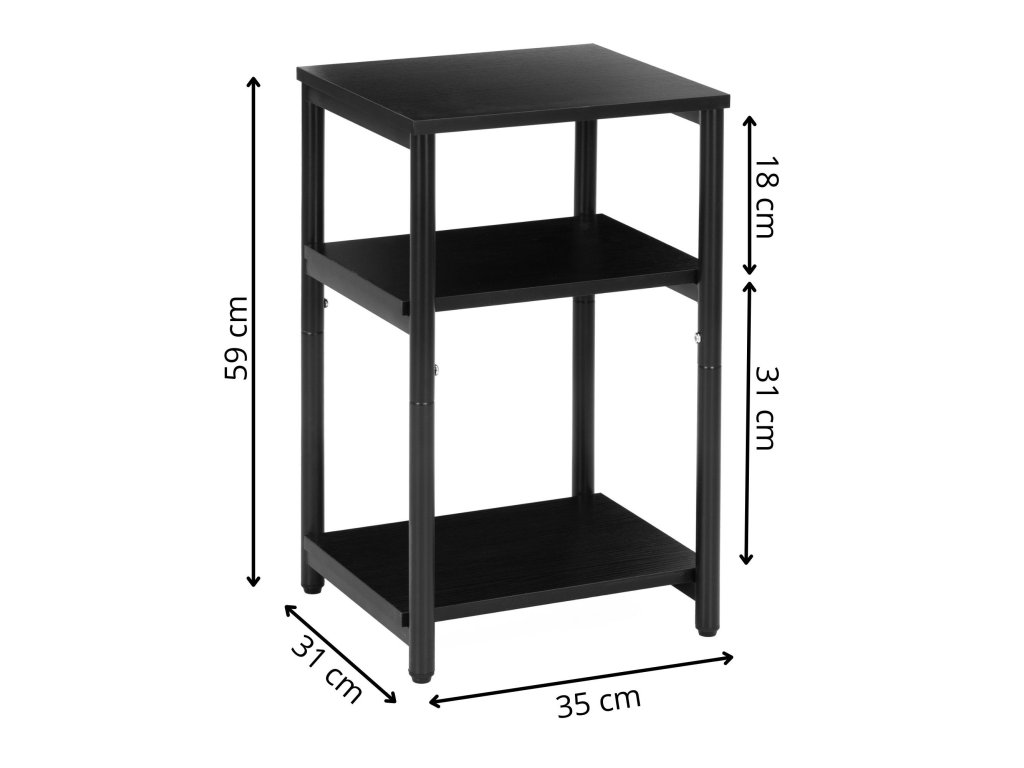 - Výška police měřená od země: 5.5 / 39 / 57.5 cm